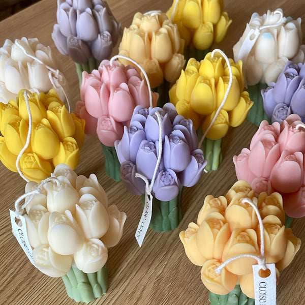 BOUGIE REPRÉSENTANT UN BOUQUET DE TULIPES